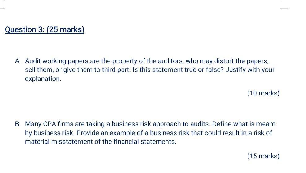 Solved Question 3 25 Marks A Audit Working Papers Are Chegg Com
